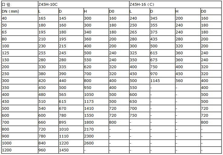 四、Z45H-10C與 Z45H-16(C)的尺寸數據:
