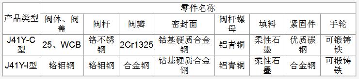 五、J941Y電動鉻鉬鋼截止閥主要零件材料