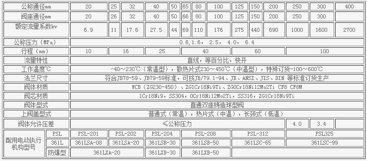 電動單座調節閥主要技術參數