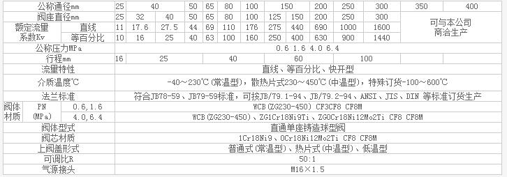 氣動套筒調(diào)節(jié)閥主要技術(shù)參數(shù)