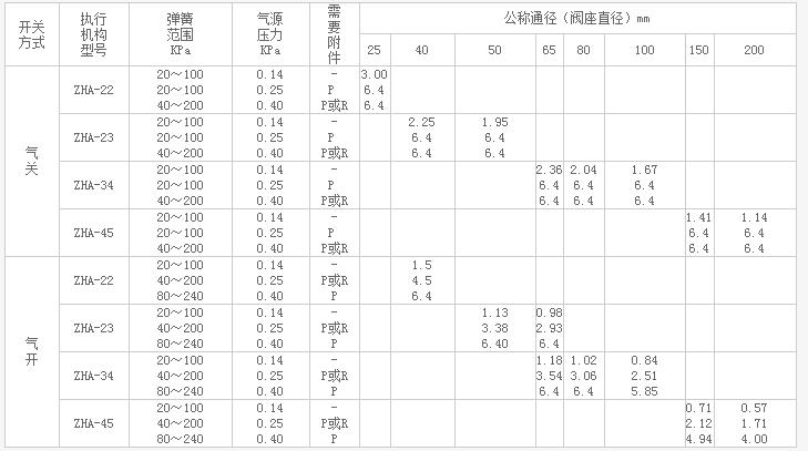 執(zhí)行機構(gòu)主要技術(shù)參數(shù)