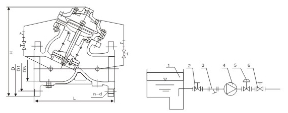 安裝在高層建筑給水系統以及其它給水系統的水泵出口管道上。防止介質倒流,防止水錘及水擊現象的產生。一閥兼具電動閥、逆止閥和水錘消除器三種功能??捎行У靥岣吖┧到y的安全可靠性。