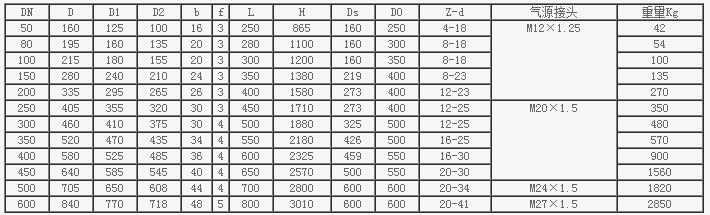 PN1.6MPa Z641H氣動閘閥主要連接尺寸和外形尺寸