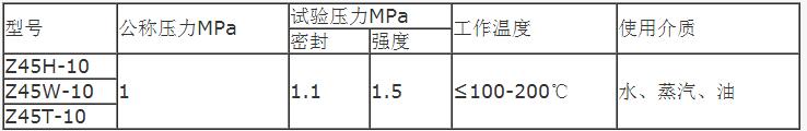 二、Z45H 暗桿鑄鋼閘閥性能參數: