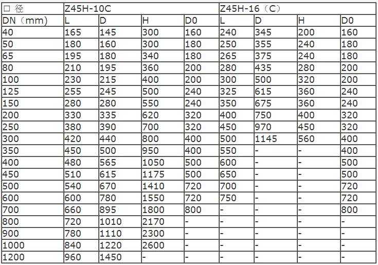 四、Z45H-10C與 Z45H-16(C)的尺寸數據: