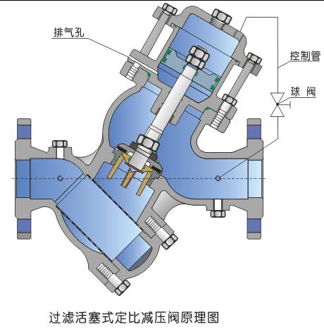 YQ98009過濾活塞式定比減壓閥是本公司新開發(fā)的一個產(chǎn)品,屬國內(nèi)首創(chuàng)。該閥是利用進(jìn)口、出口壓力作用面積之差,利用進(jìn)、出口壓力不同情況下所受的作用力而達(dá)到平衡,使進(jìn)、出口壓力的比值恒定為壓力比。從而達(dá)到定比減壓的目的。